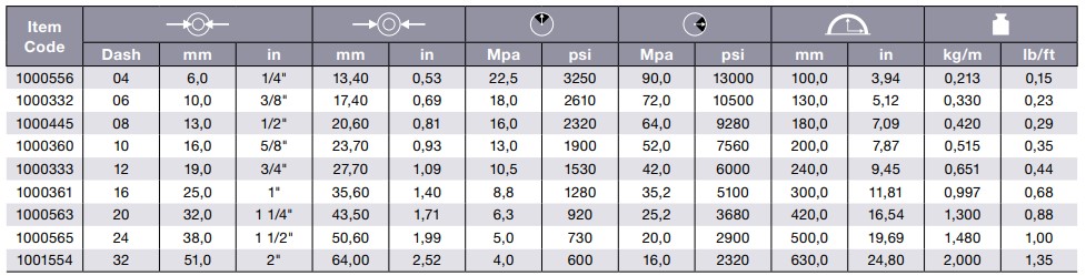 - Aplicación: líneas hidráulicas de alta presión, fueloil, soluciones anticongelantes, aire y agua. Especialmente diseñado para aplicaciones de alta temperatura. No se recomienda para servicio con vapor.