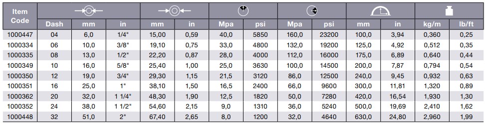 - Aplicación: líneas hidráulicas de alta presión, fueloil, soluciones anticongelantes, aire y agua. Especialmente diseñado para aplicaciones de alta temperatura. No se recomienda para servicio con vapor.